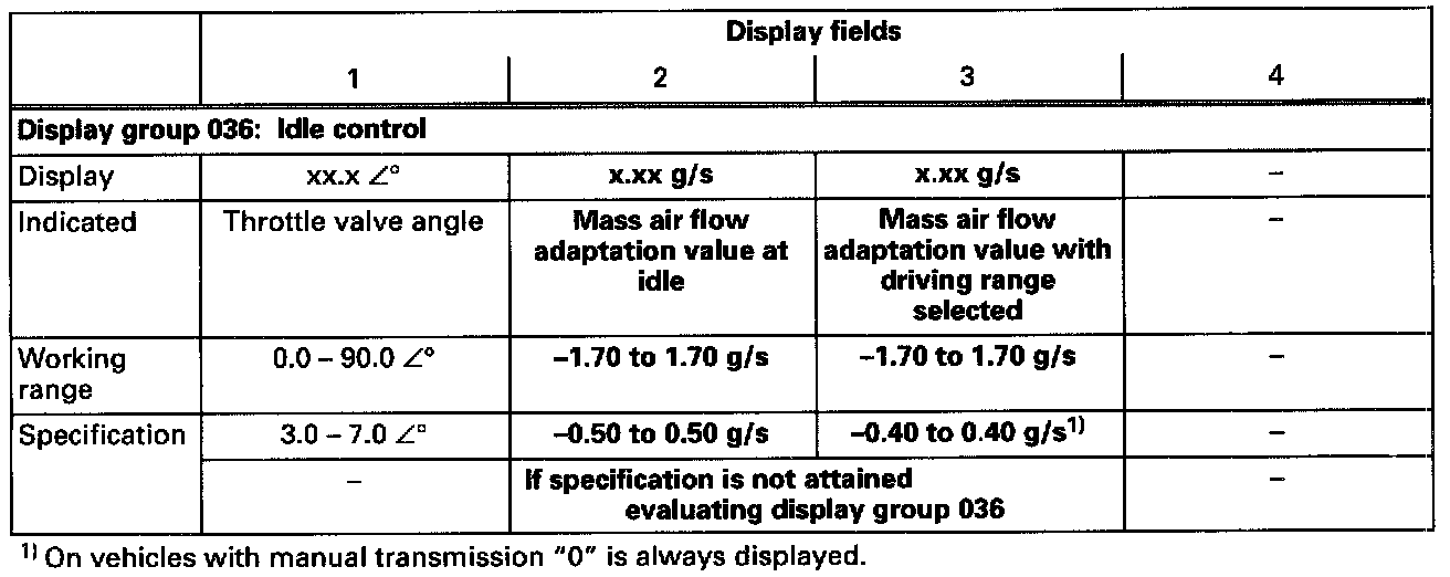 - Connect VAG 1551/1552 scan tool and select "Engine Electronics" address word 01. Testing and InspectionWhen doing this the engine must be running at idle speed.