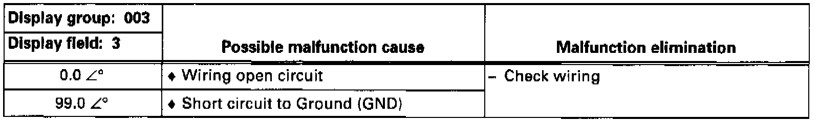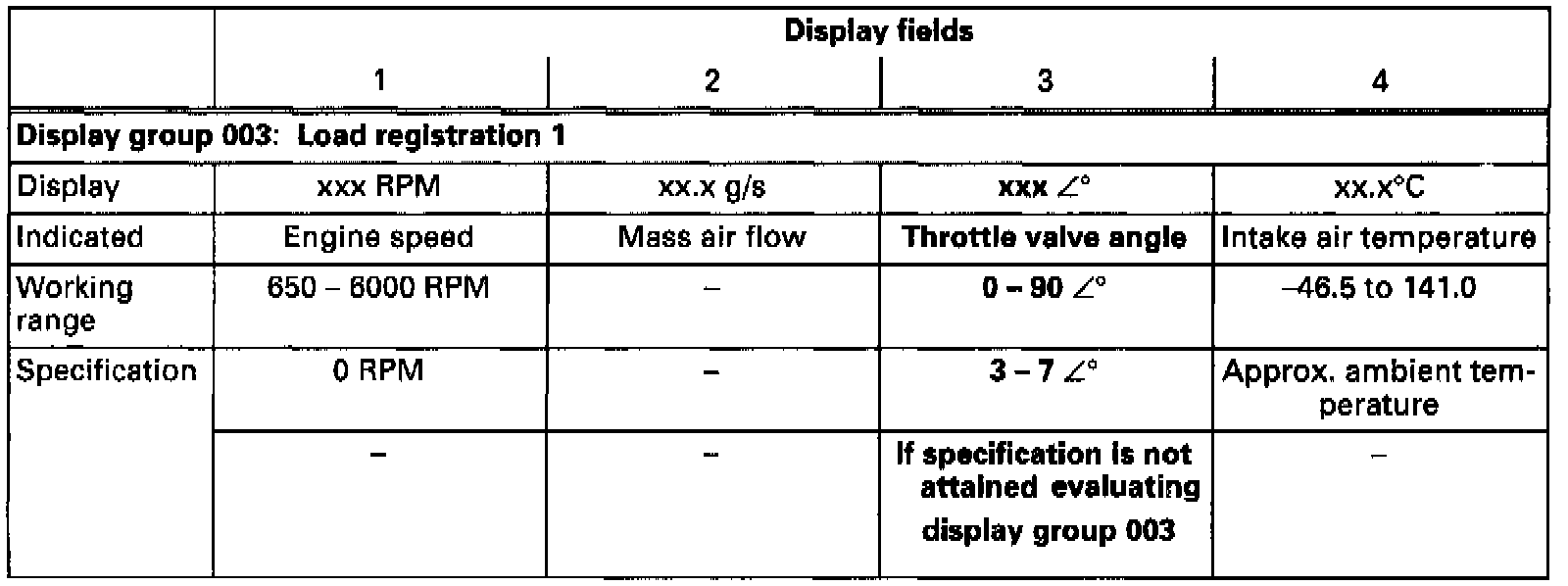 The displayed value is dependent on the tolerances of the throttle position sensor and does not correspond to the actual opening angle. The maximum permissible displayed value is 90.0 <°.