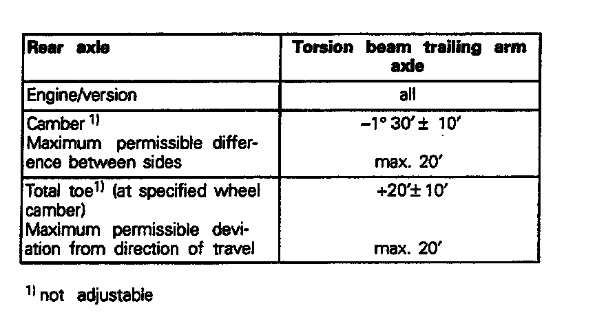1) Camber and toe corrections possible using eccentric rubber mounting.