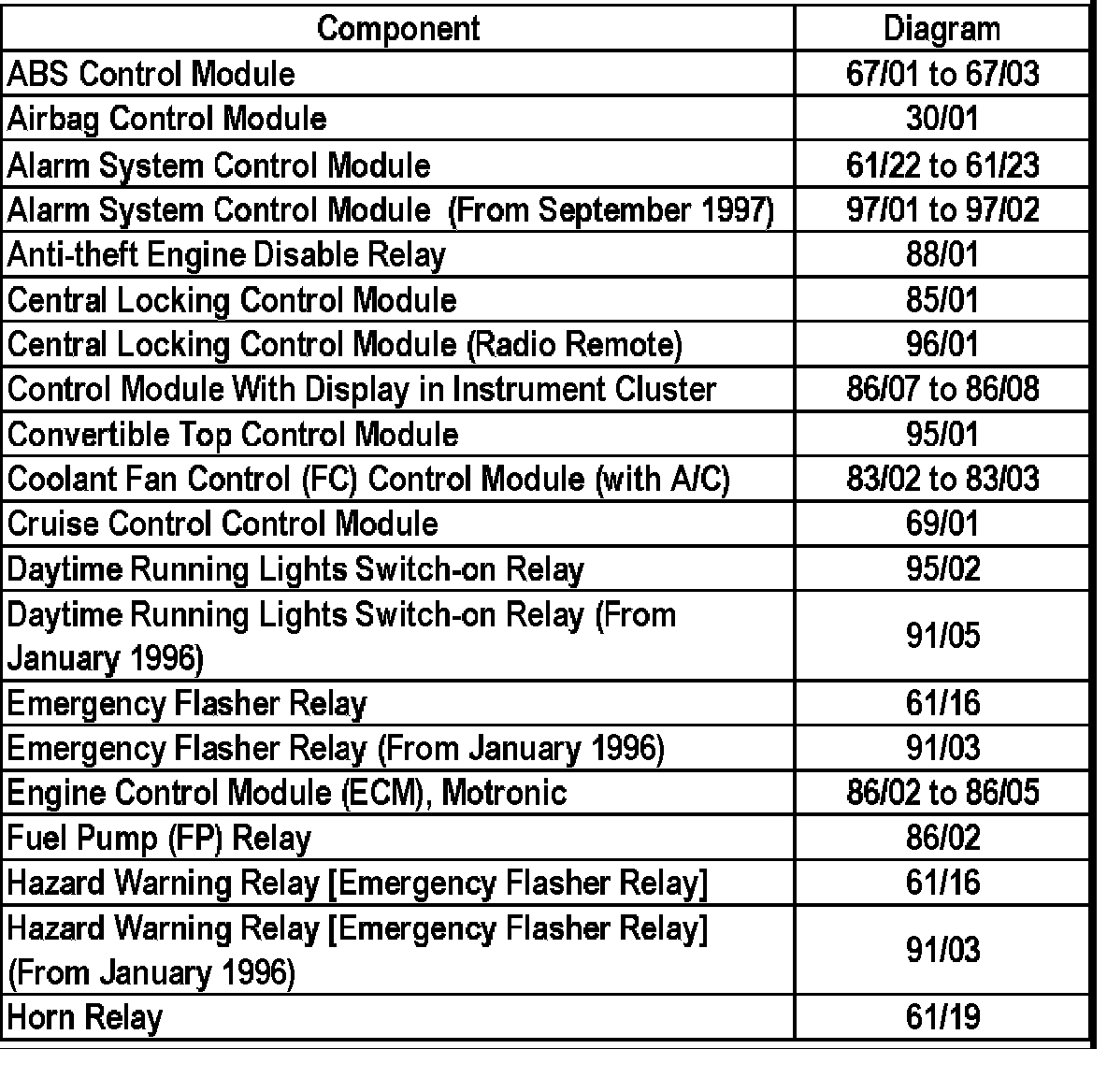 Master Diagram Index