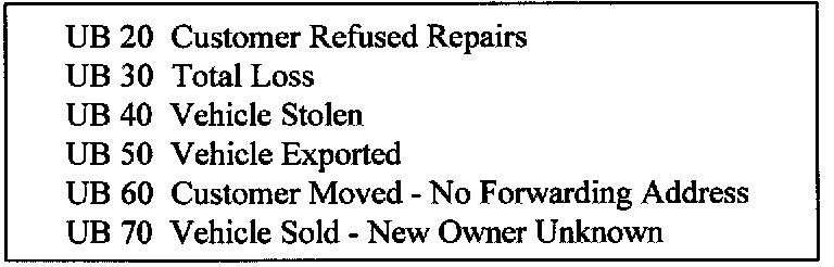 For all vehicles which, according to your information are unreachable, please enter into the system one of the codes indicated as applicable: