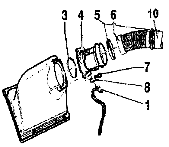 - Loosen clamps -5- on air hose -6- between MAS -4- and intake air duct -10- and remove air hose