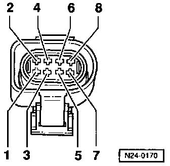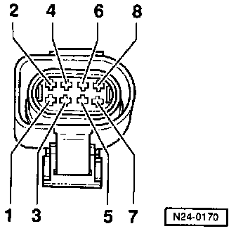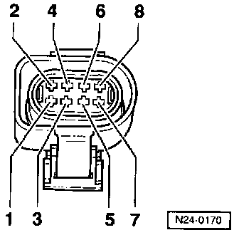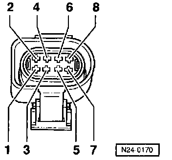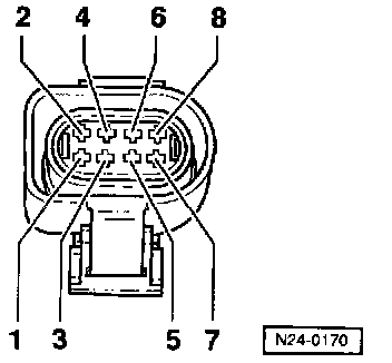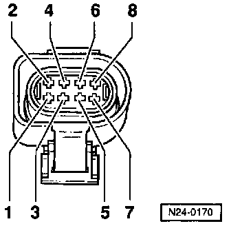 - Connect multimeter using adapter cables from VW 1594 to measure voltage at terminals 4 and 7 of connector.