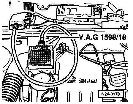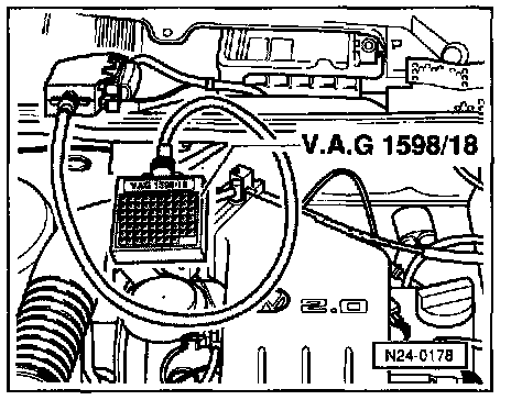 - Connect VAG 1598/18 test box to ECM wiring harness.