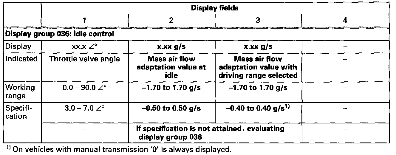 The displayed value is dependent on the tolerances of the Throttle Position sensor and does not correspond to the actual opening angle. The maximum permissible displayed value is 90.0 <°.