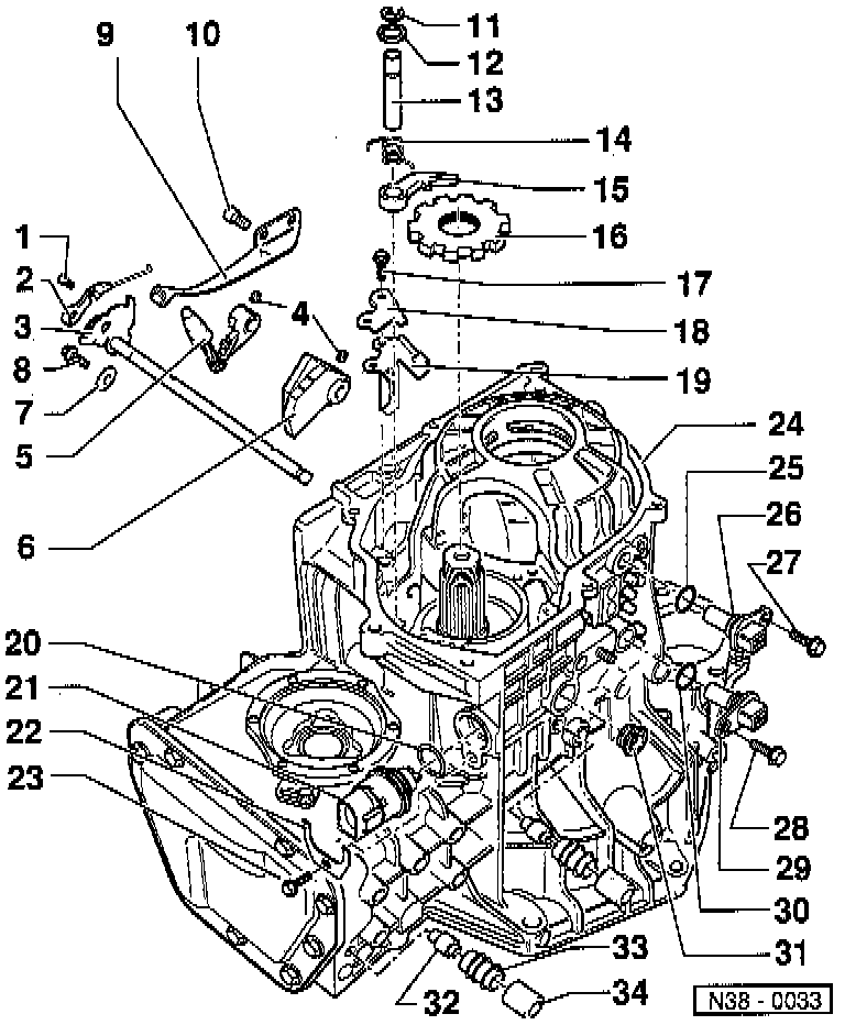- Install together with selector shaft and engaging lever
