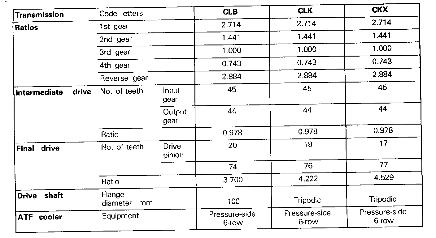 01M Transmission- Code Letters, Transmission Allocation, Ratios, Equipment -