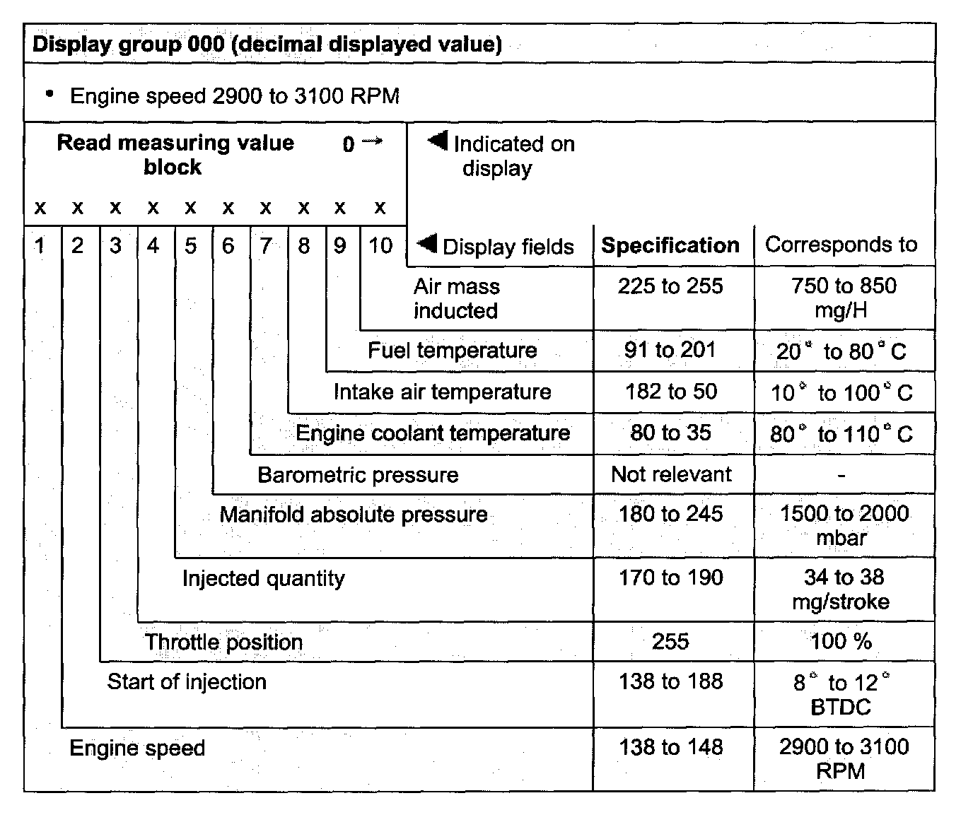 - Measuring values must be printed out or read (2nd person required) when engine speed reaches 3000 RPM.