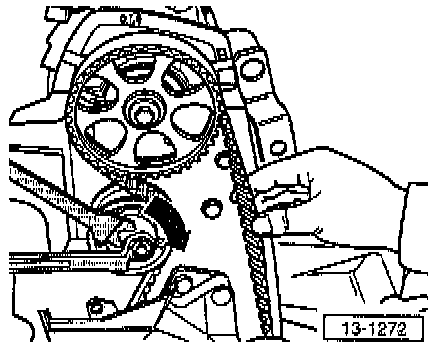 NOTE: It must be possible to twist drive belt by 90° with thumb and forefinger half-way between camshaft and intermediate shaft drive belt sprockets.
