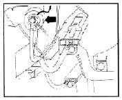 - Attach the other end of ground wire to ground connection (see arrow) located above driver's footwell, to the left of the steering column. Tighten to 10 Nm (7 ft lb.)