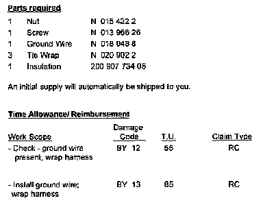 Install ground wire and check harness routing. Correct vehicles in inventory prior to their retail sale. Correct sold vehicles during the next scheduled maintenance or repair service as follows:
