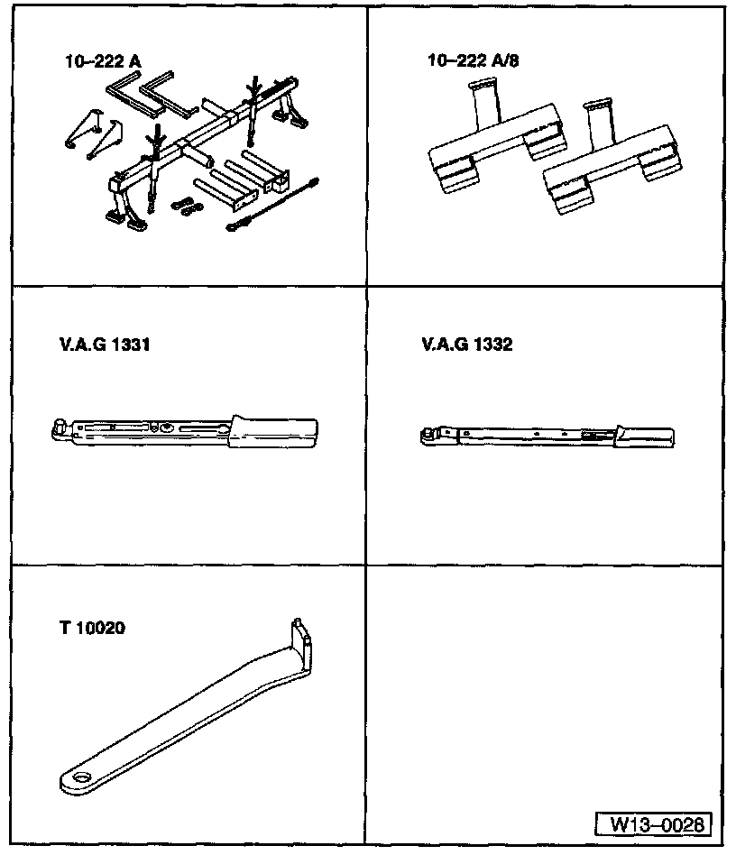 - VAG 1332 Torque wrench 40 to 200 Nm (30 to 148 ft lb) (or equivalent)