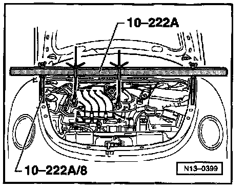 - Use 10-222 A support tool to support engine/transmission.