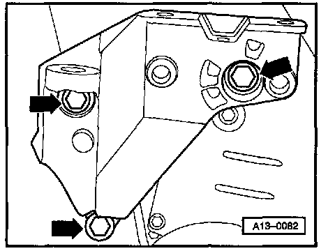 - Remove bolts for engine bracket from cylinder block -arrows-.