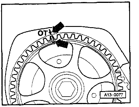 - Bring mark on camshaft into line with the mark on cylinder head cover.