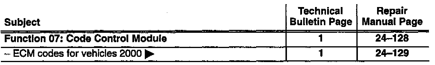 ECM codes for vehicles 2000 -