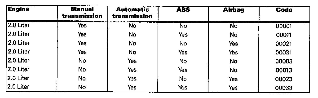 Model Year 2000 Engine Control Module Codes
