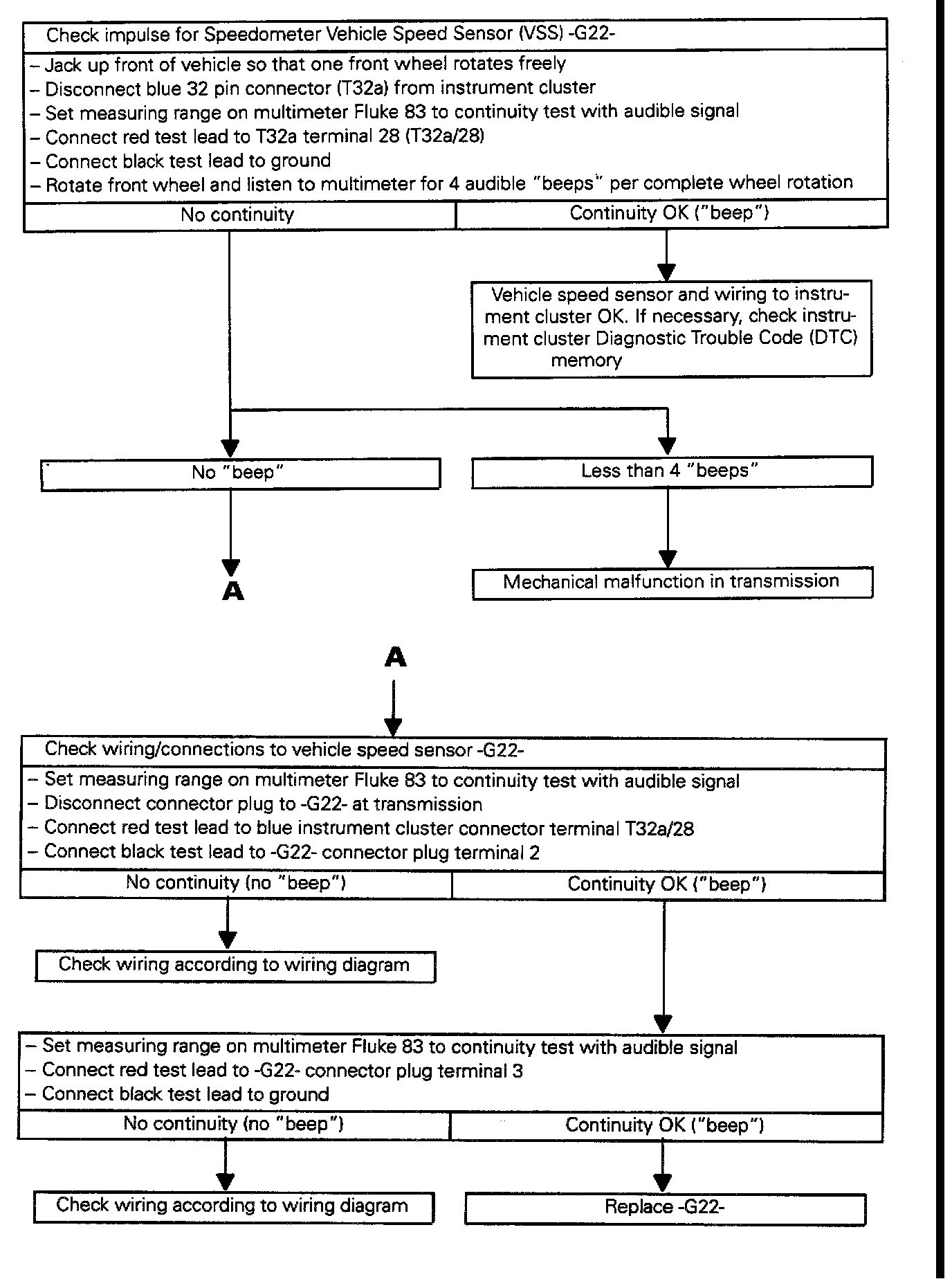Checking speedometer vehicle speed sensor (VSS) -G22-