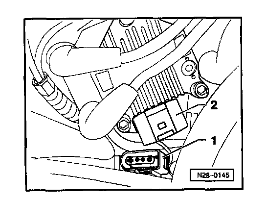 - Disconnect 5-pin harness connector -1- from ignition coil Power output stage -2-.