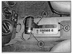 - Remove gear sift cover by prying up at -C-