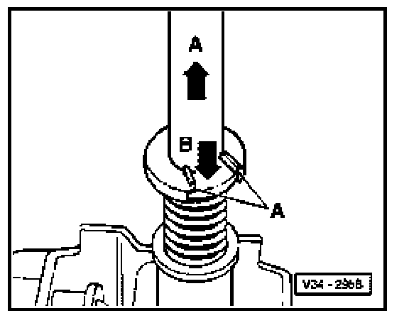 - To remove and install cirdip pull gear lever in arrow direction -A- and at same time push down spacer bushing onto stop with a screwdriver in arrow direction -B-.