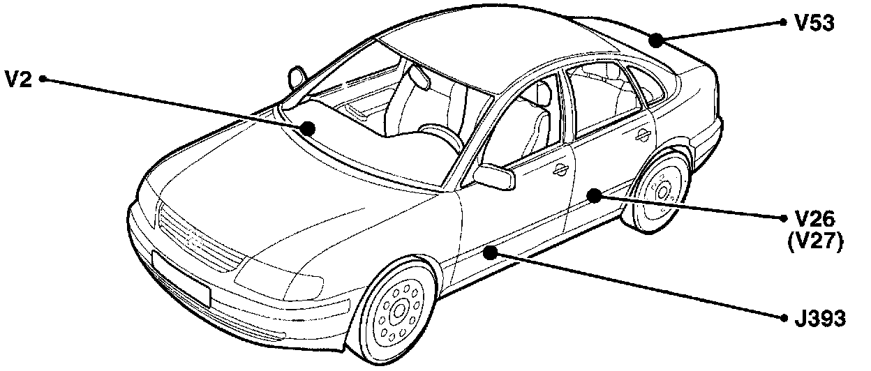 Component Location View: J393, V26, V27, V2, V53: