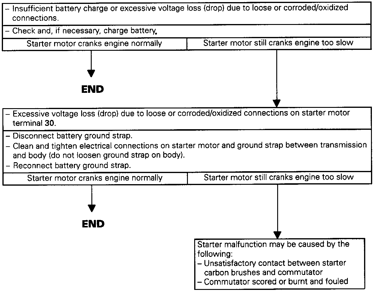 Troubleshooting - Starter Cranks Too Slowly To Start Engine: