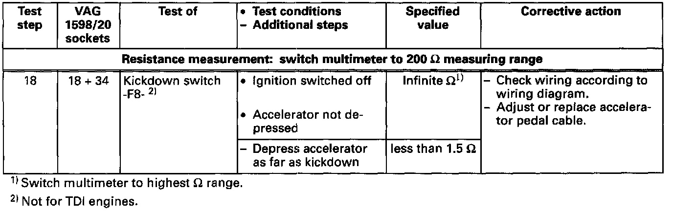 Electrical Test Tables (Pinout Charts)