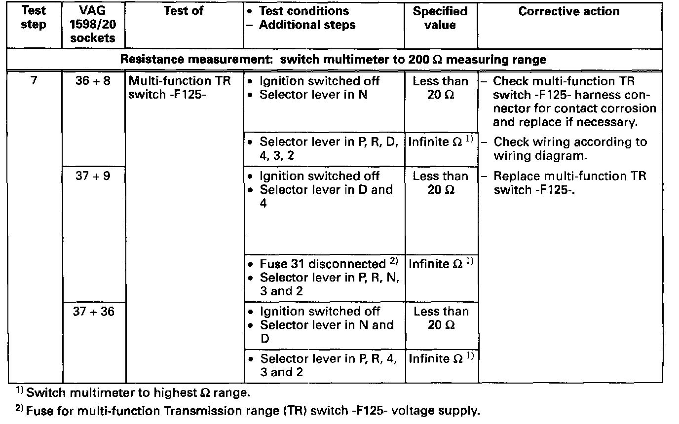 Electrical Test Tables (Pinout Charts)