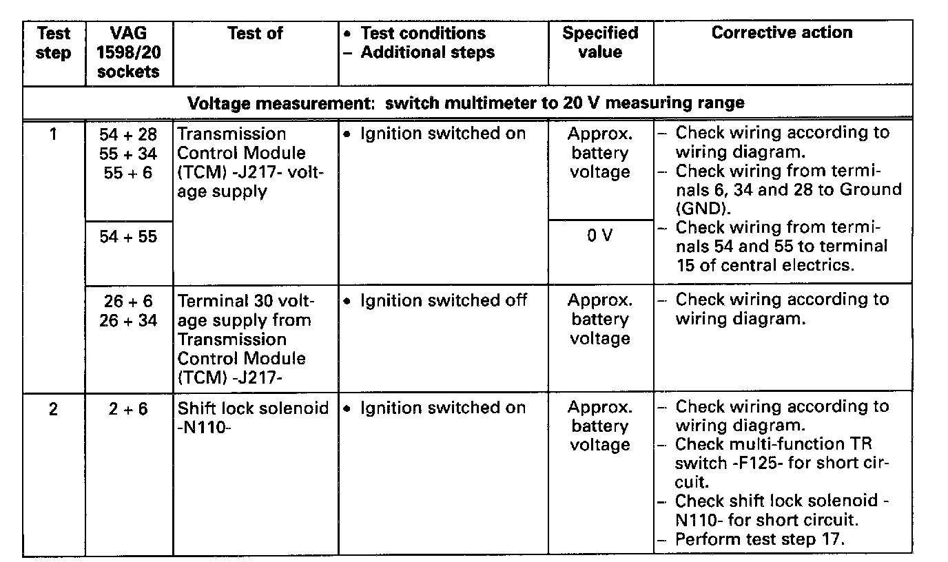 Electrical Test Tables (Pinout Charts)