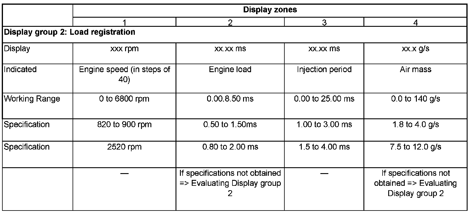 - Engine Coolant Temperature must be at least 85 °C, = Display group 04, Display zone 3