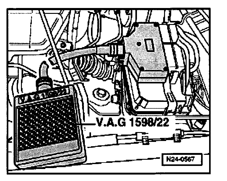 - Connect VAG 1598/22 Test Box to ECM wiring harness.