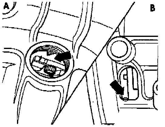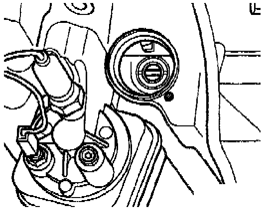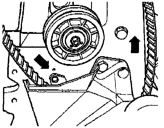 - To tighten toothed drive belt, turn tensioner with pin wrench (e.g. Matra Vi 59) in direction shown (arrow).