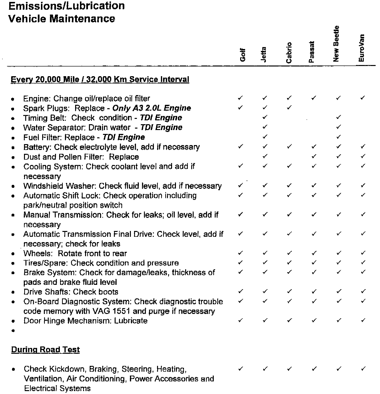 ^ Every 20,000 Miles / 32,000 Km Lubrication / Maintenance Service