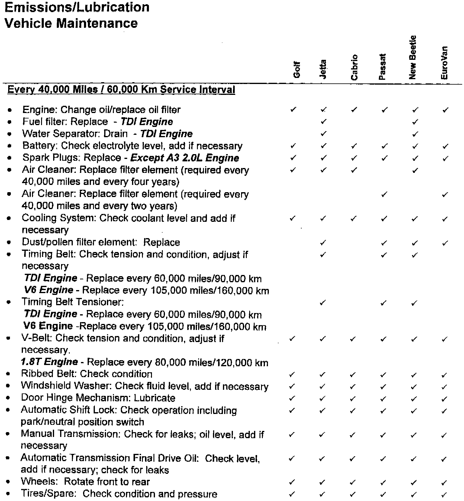 ^ Every 40,000 Miles / 60,000 KM Lubrication / Maintenance Service