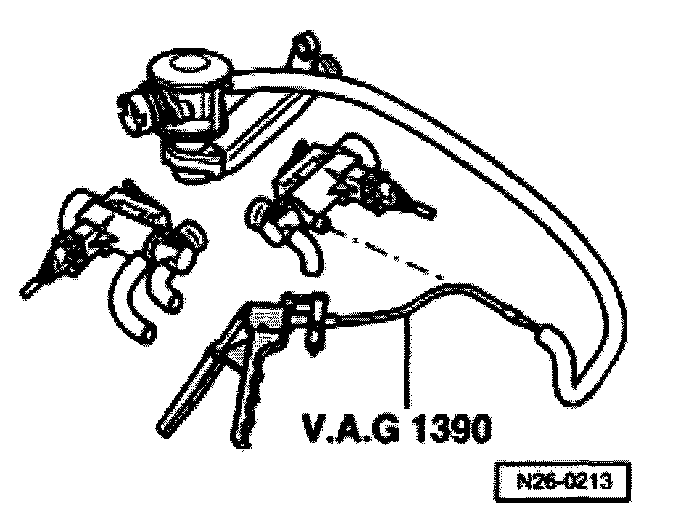- Connect VAG 1390 manual vacuum pump on vacuum hose to combination valve.