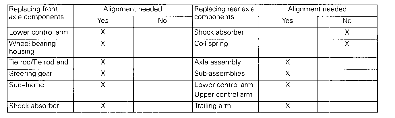 It is always necessary to check alignment of all four wheels to ensure correct driving characteristics.