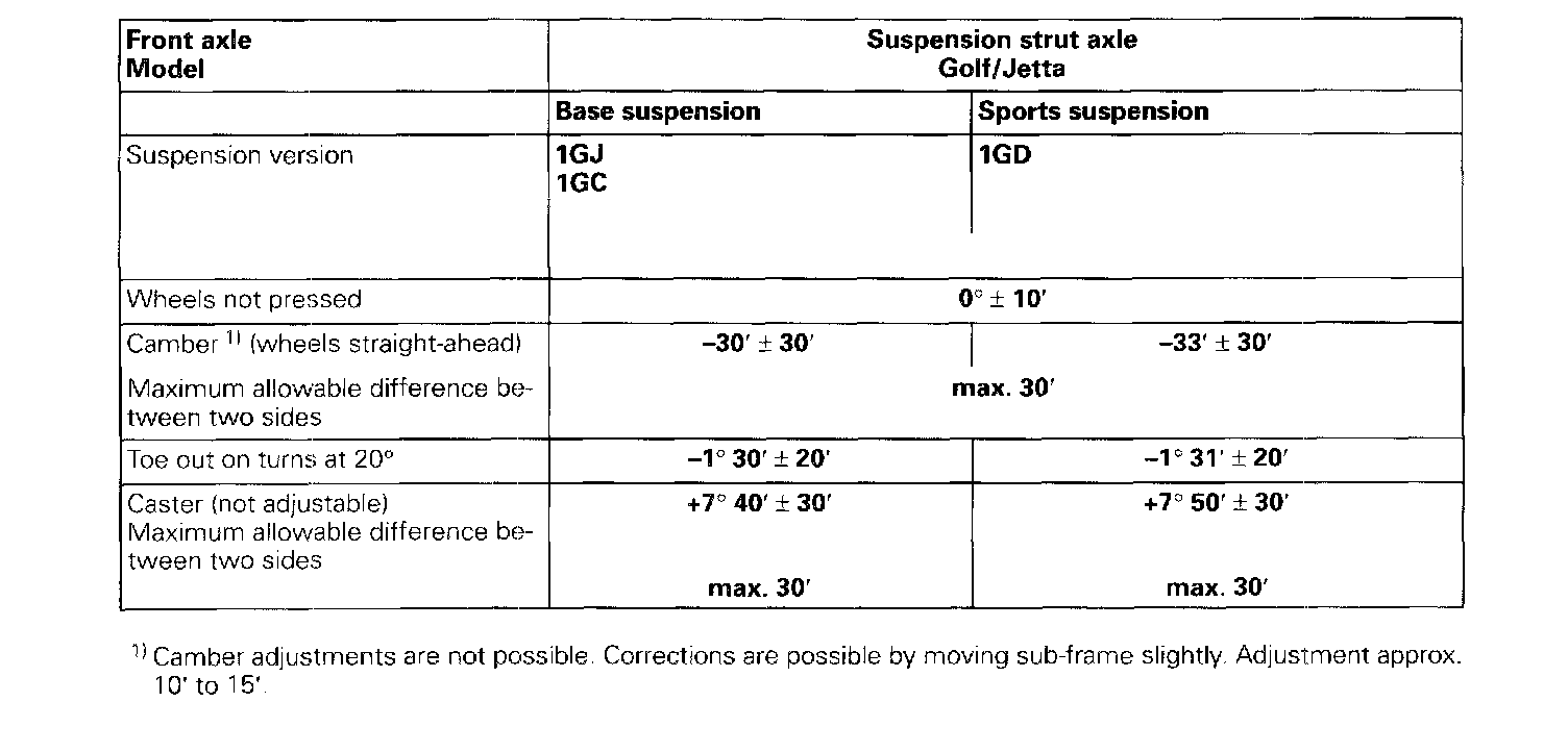Wheel Alignment Specifications