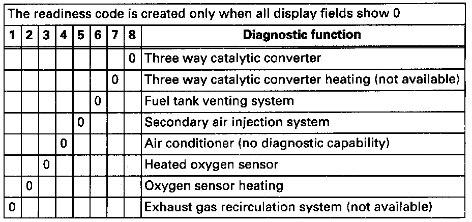 Readiness Code, Reading (scan tool function 15)