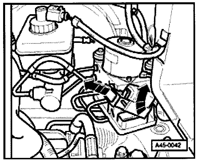 - Connect test box VAG 1598/21 -1- to ABS control module wiring harness connector -2-.