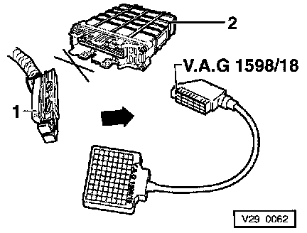 - Connect VAG 1598/18 Test Box to ECM wiring harness