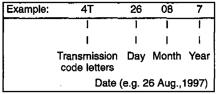 Code letters and date of manufacture (arrow).