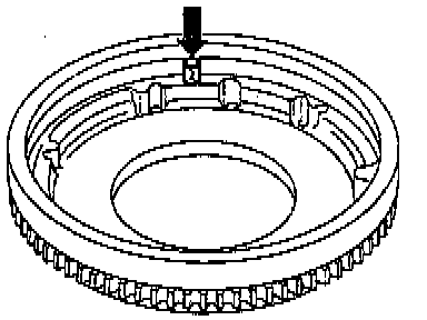 One recess -arrow 1- mates with one flywheel alignment dowel pin