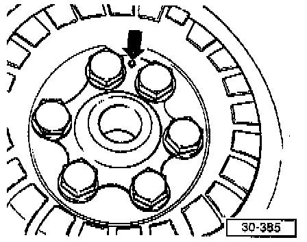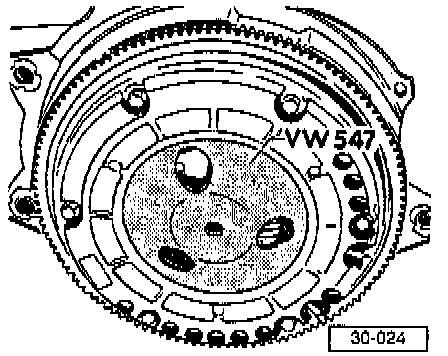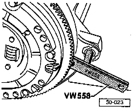 Install VW 558 retainer to flywheel (as during removal) to tighten flywheel bolts