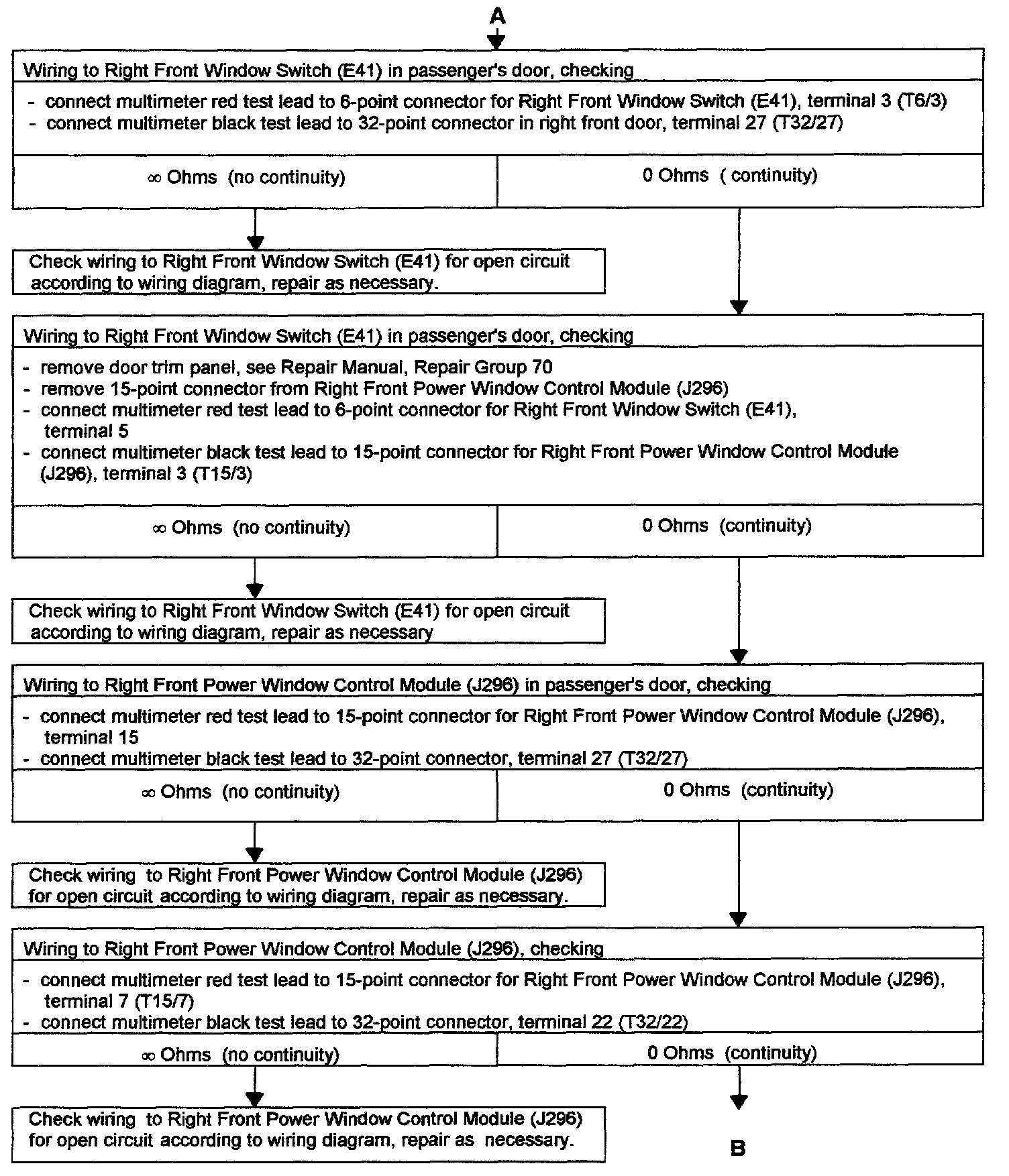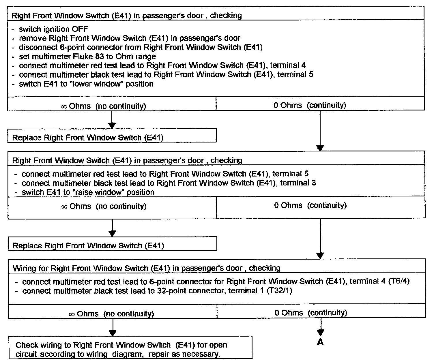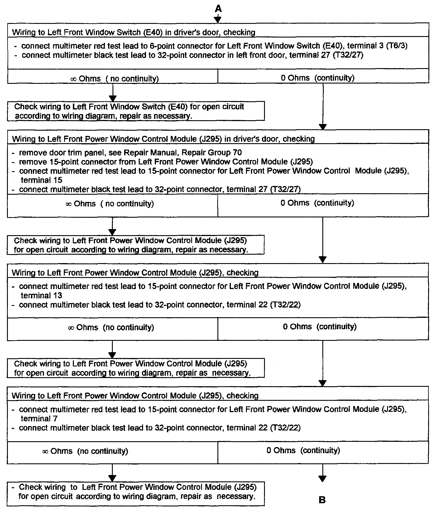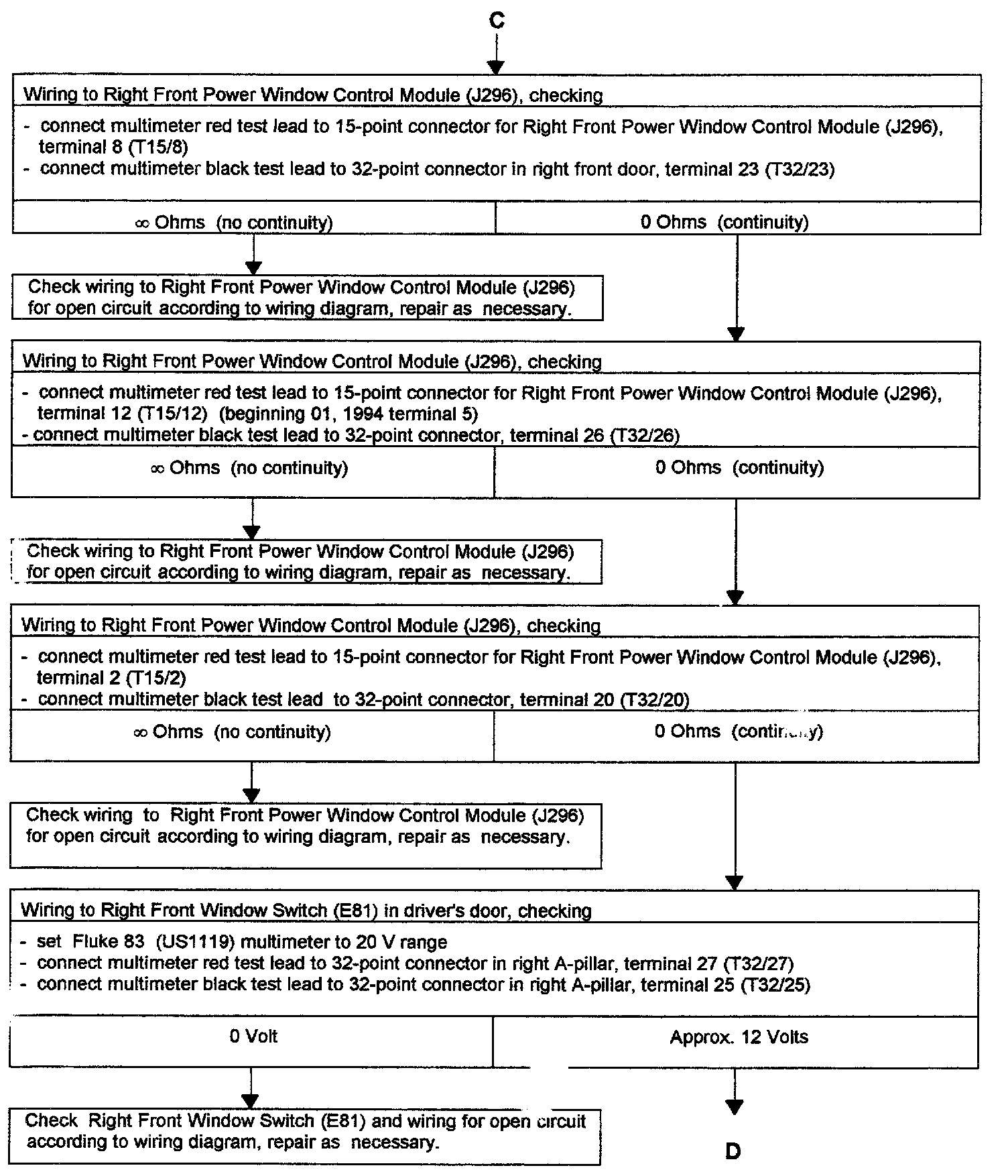 - See Troubleshooting POWER WINDOWS, LEFT AND RIGHT FRONT, CHECKING" for passengers door.