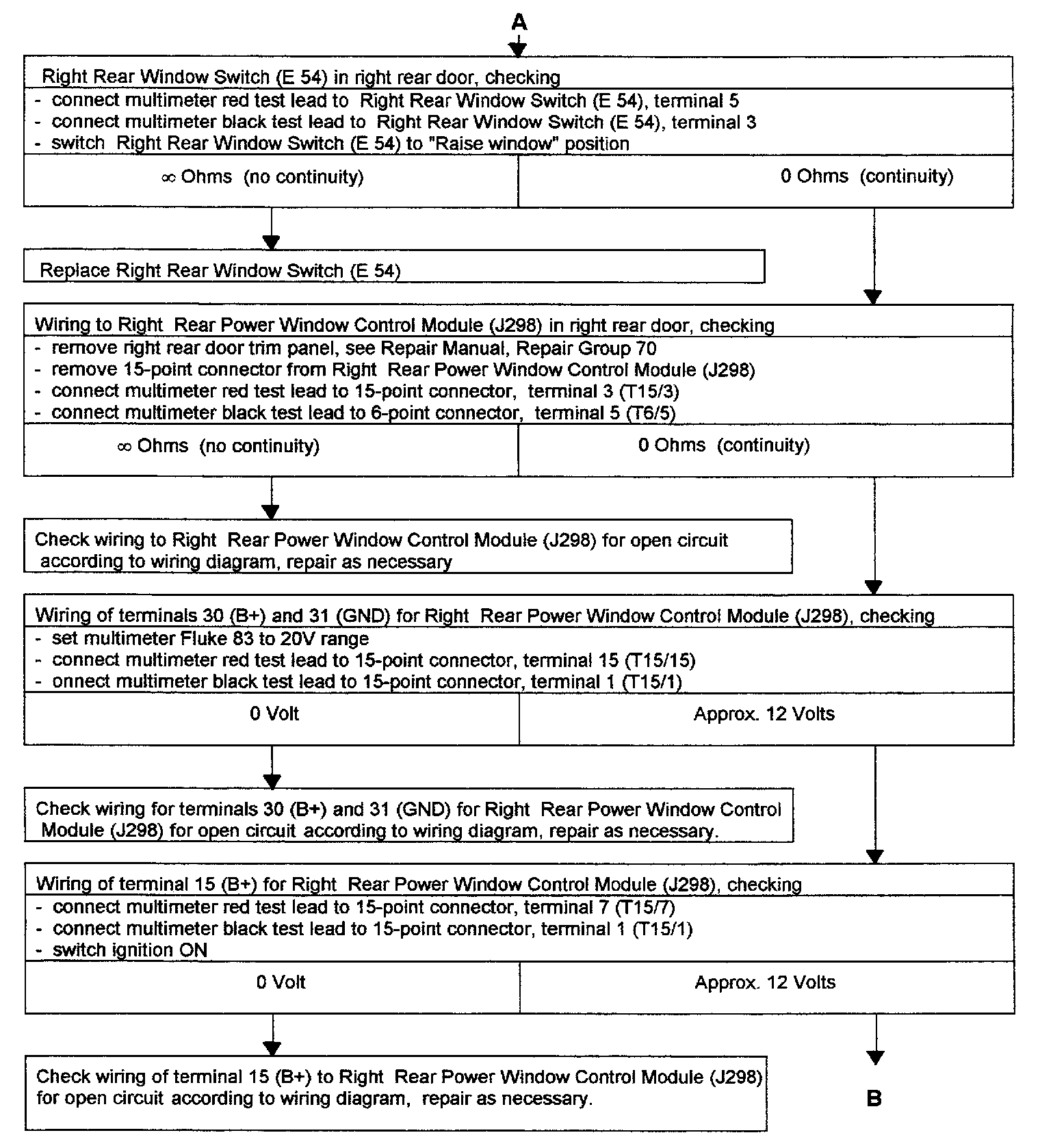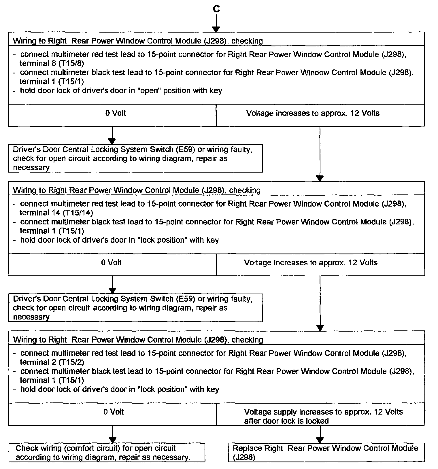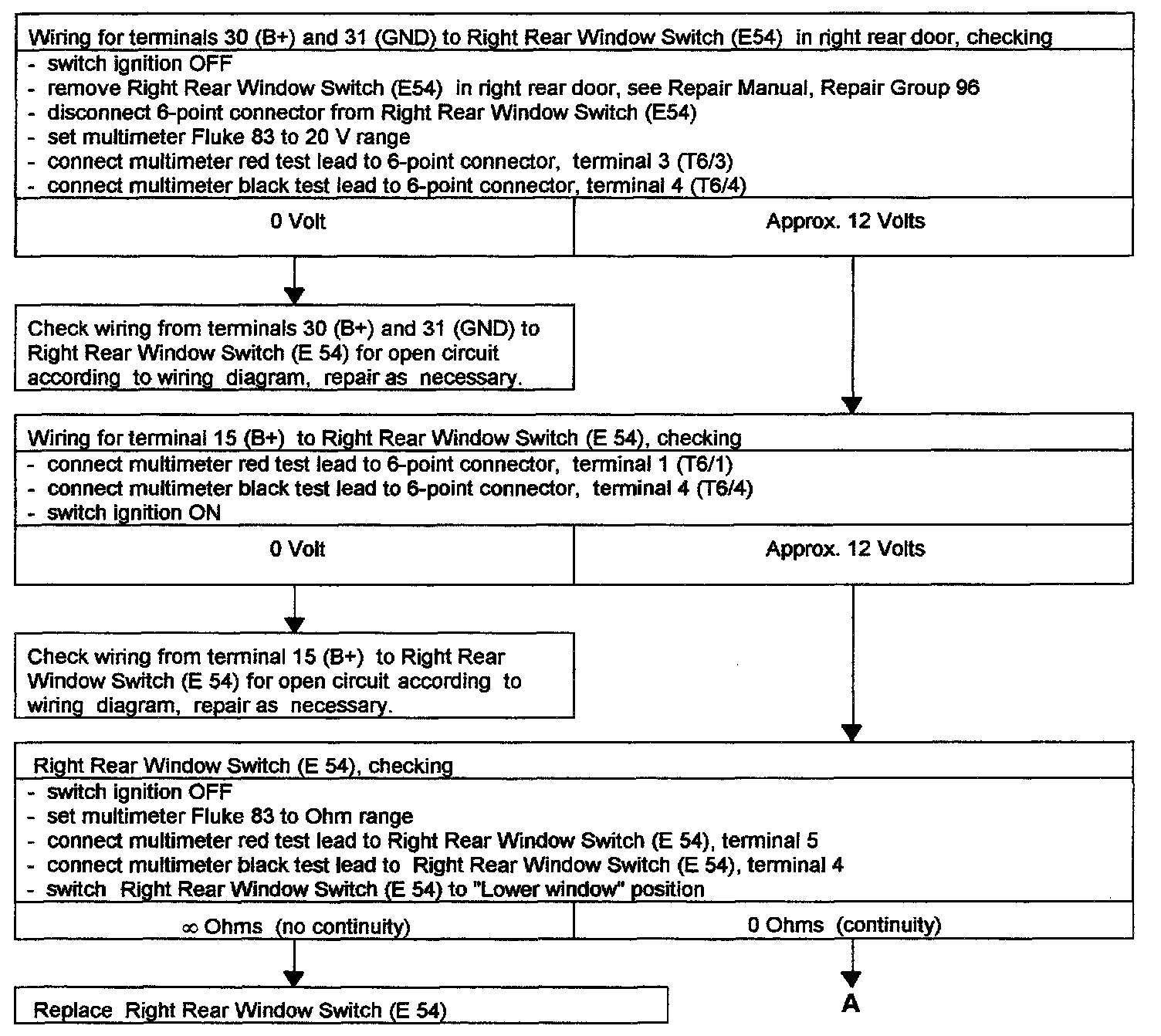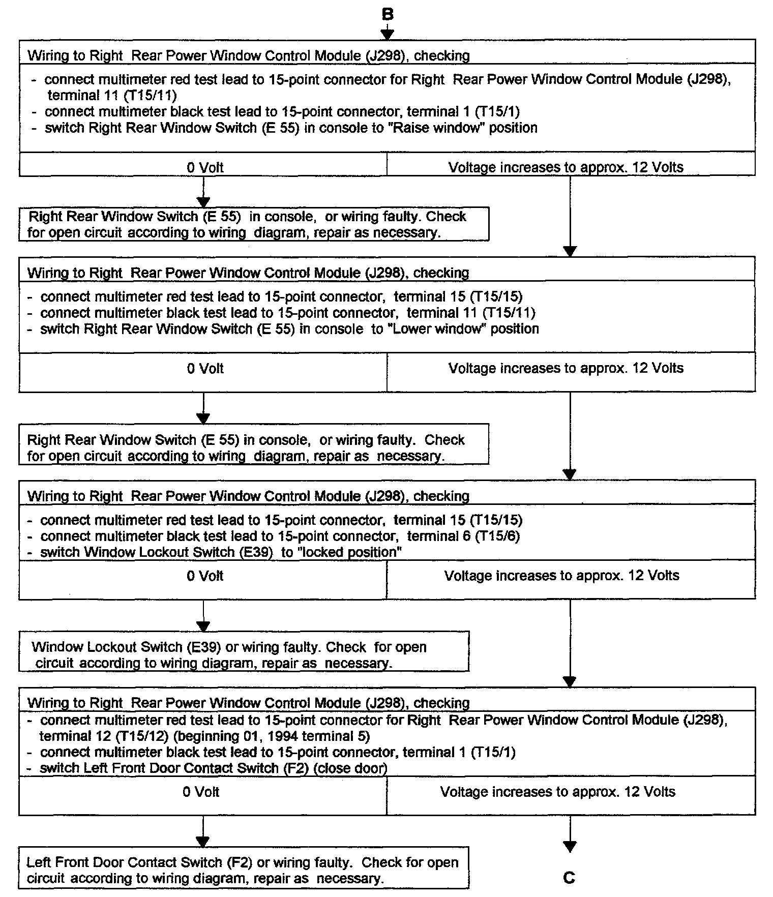 POWER WINDOW, RIGHT REAR, CHECKING