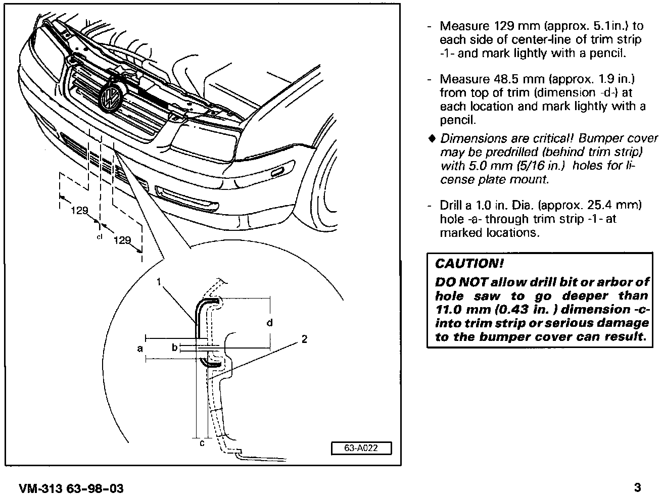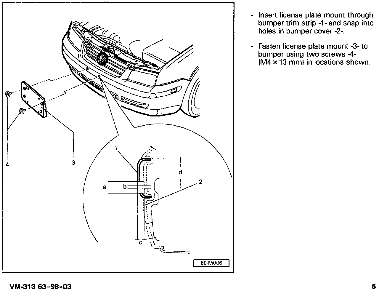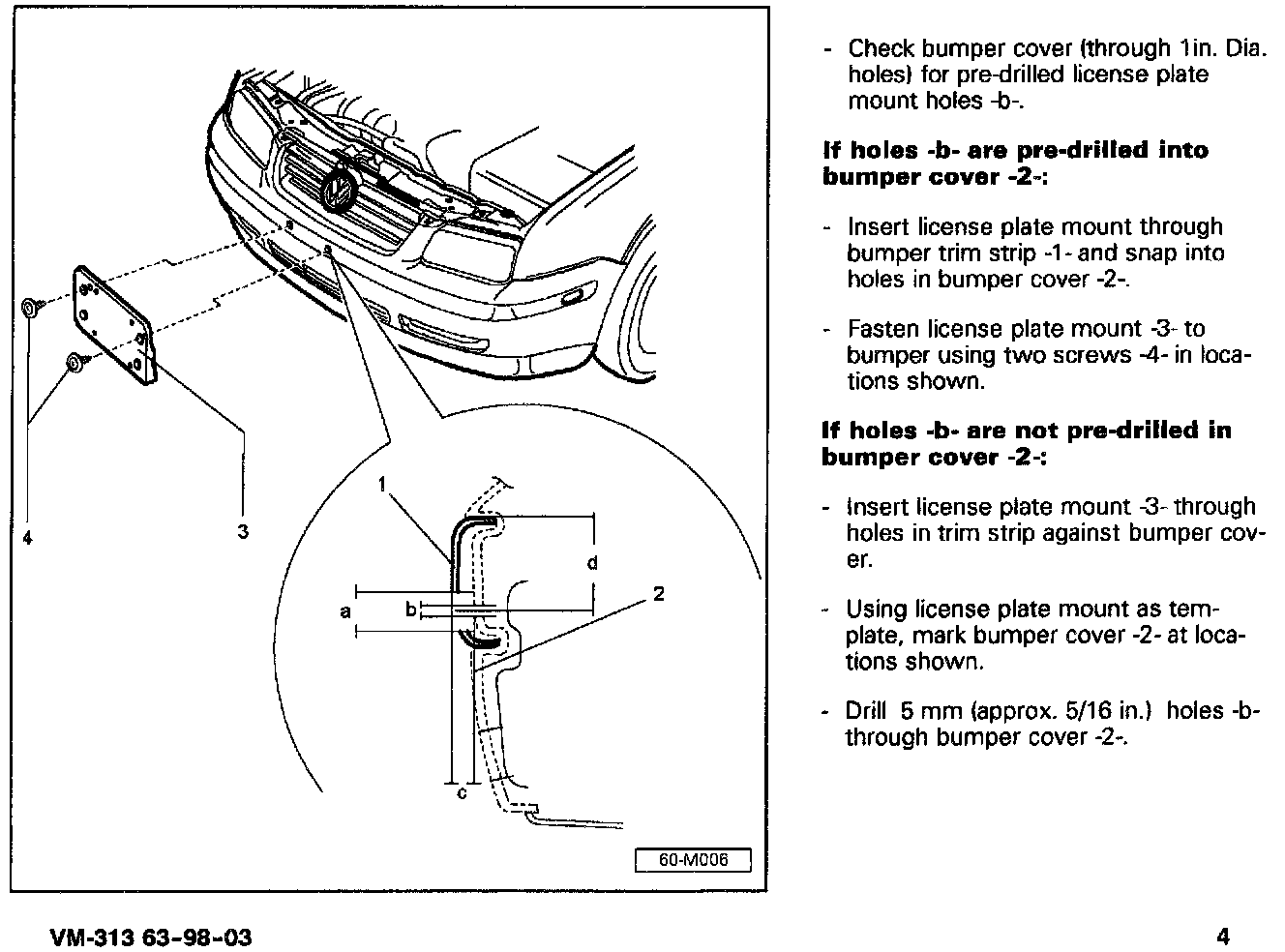 When installing a front mounted license plate, use the pages above to locate and install the front license plate mount.