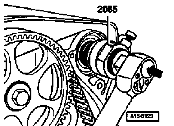 - Screw bolt 2085/1 into camshaft onto stop by hand, to guide seal extractor.