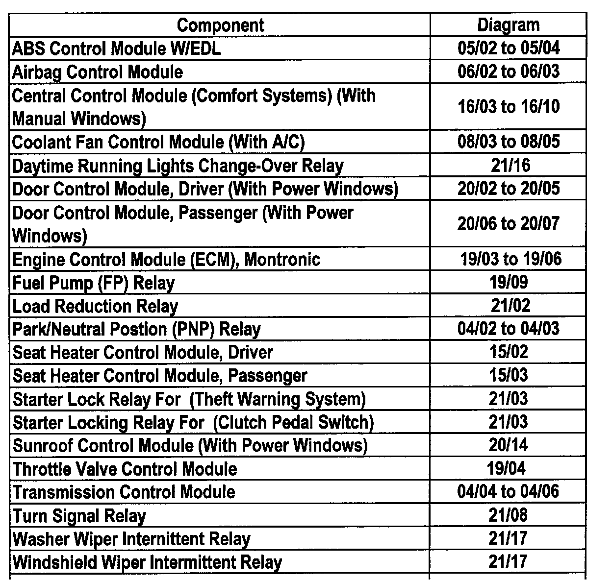 Master Diagram Index