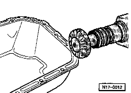 - Remove sealant residue on the oil pan with a rotating brush, e.g. hand drill with a plastic brush (wear protective glasses).